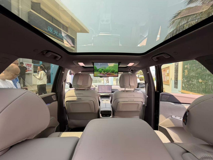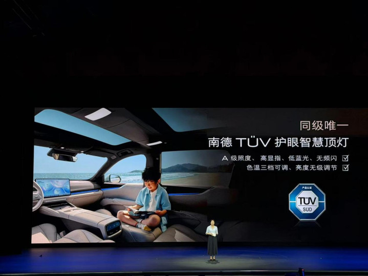车身侧面,线条洞开舒展,凌厉腰线陆续首尾。轮眉经受车身同色惩处,标配20英寸低风阻轮毂,搭配半荫藏式车门把手的臆想打算,进一步强化通顺姿态,尺寸方面,新车长宽高差别为4850/1910/1676mm,轴距2850mm,依托“放浪”超等交融架构优化车身比例,,为车内大五座布局奠定坚实基础。
